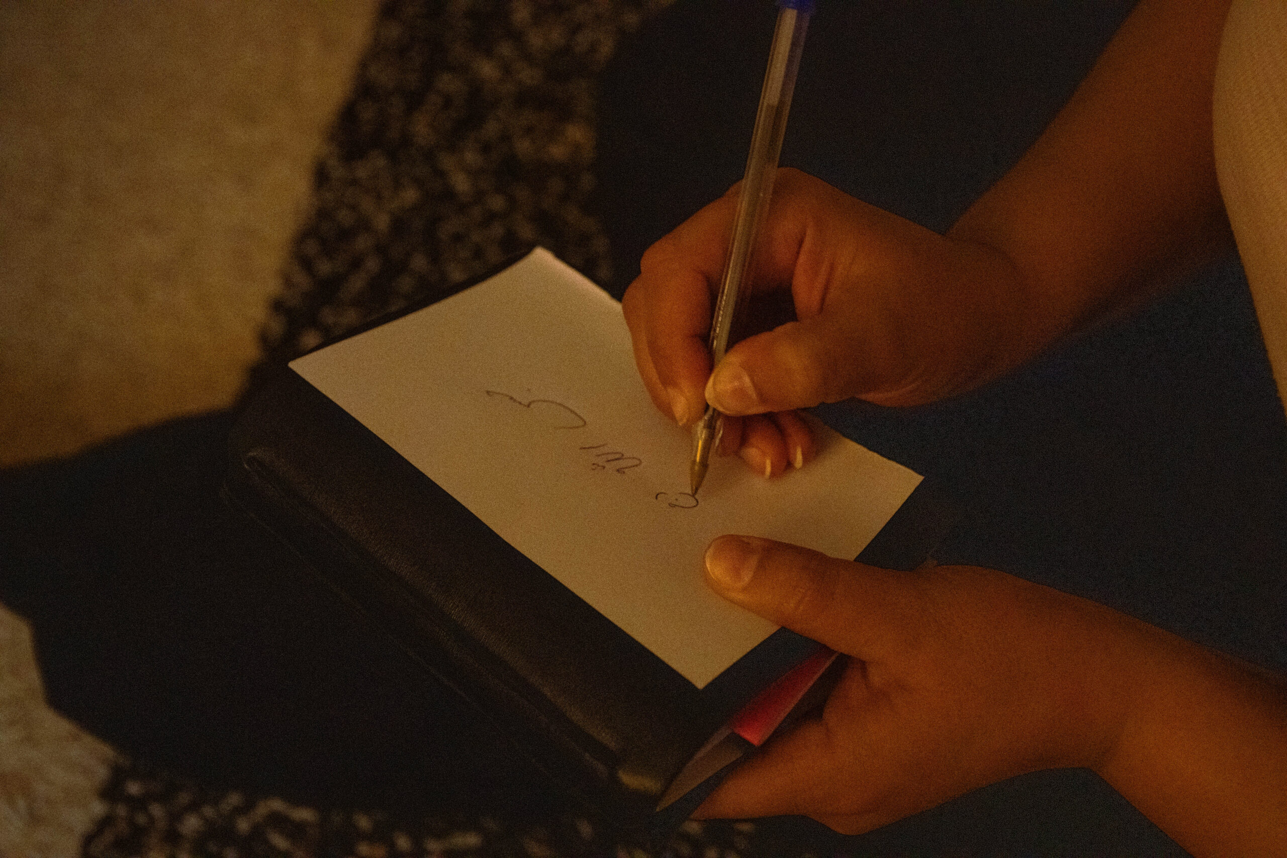 Finalmente, tras un abrazo, interrumpir la grabación y seguir con el té, y una conversación más íntima. Le pido que me regale una frase persa y ella escribe: